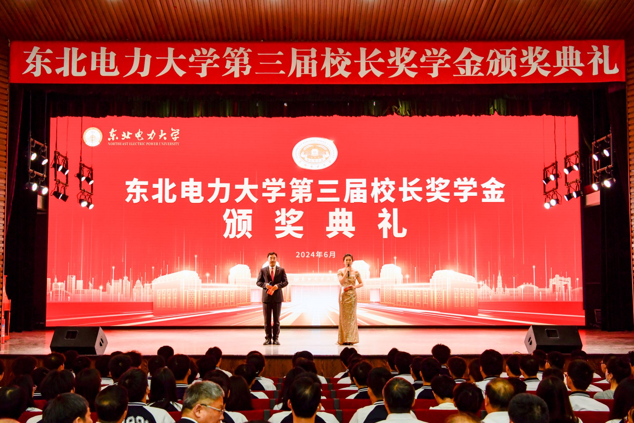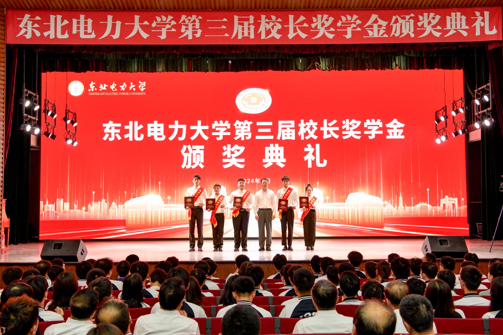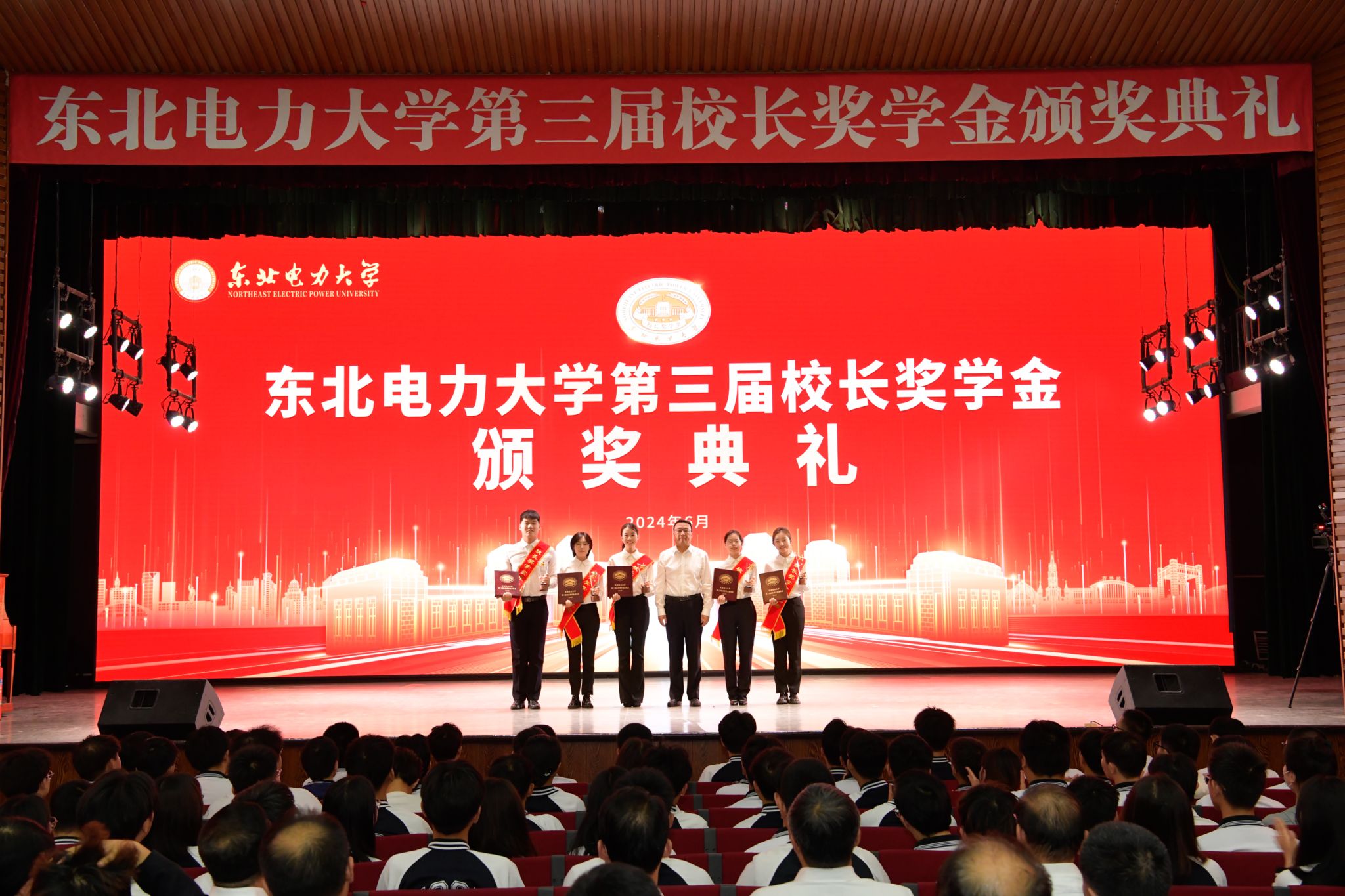 6月17日,学校在礼堂隆重举行第三届校长奖学金颁奖典礼。学校党委书记张静辉、校长蔡国伟出席并为校长奖学金获得者颁发奖章和奖杯,党委副书记詹丽萍、李忱,纪委书记侯奎岩,党委常委、宣传部部长刘辉参加颁奖典礼并为校长奖学金提名奖获得者颁发证书。詹丽萍宣读了《东北电力大学关于表彰第三届校长奖学金获得者及提名奖获得者的决定》,校长奖学金获得者所在学院院长宣读获奖者颁奖词。