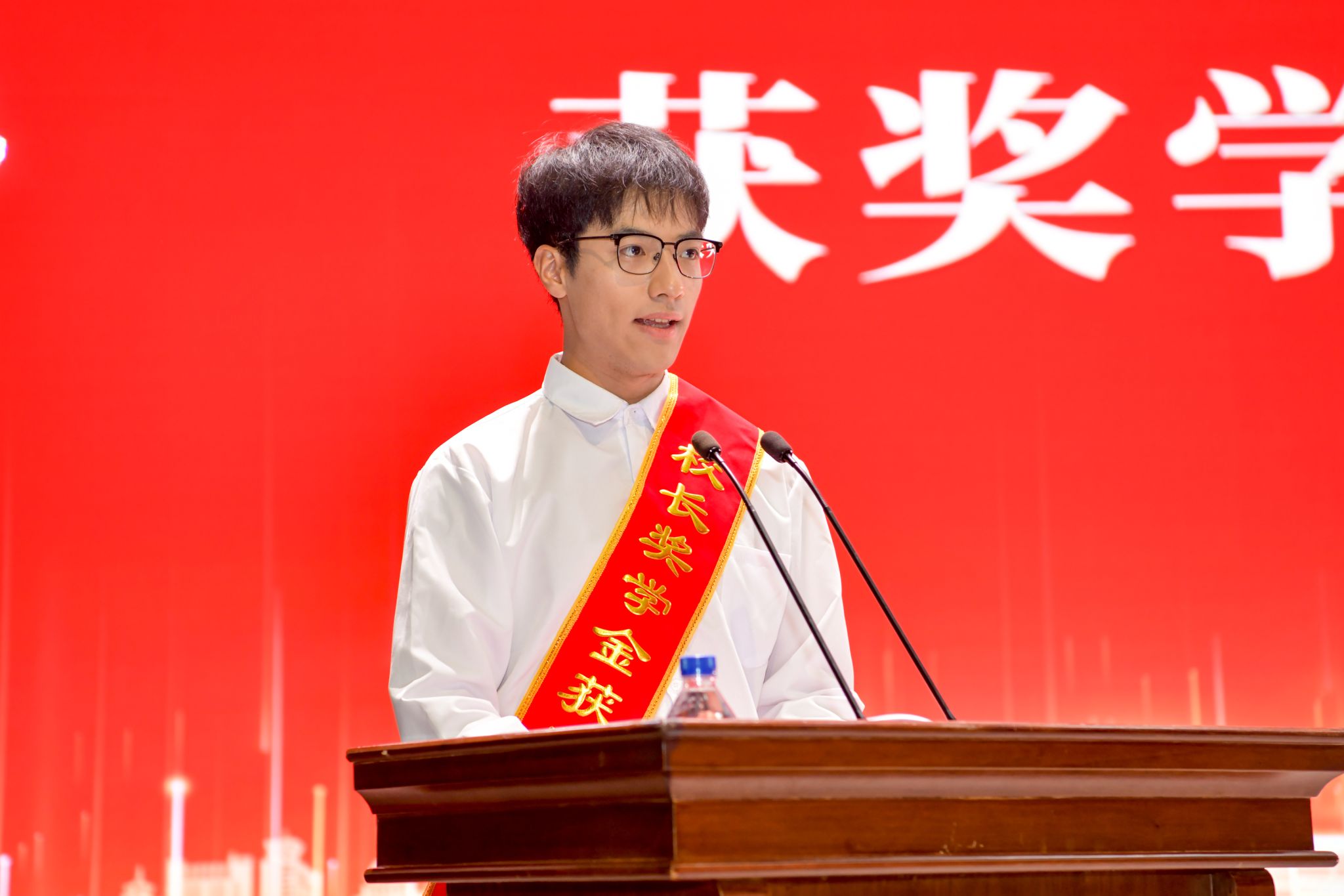 本届校长奖学金获得者,电气工程学院徐晟博代表全体受表彰的同学发言。他感谢恩师保驾护航,益友风雨同舟;致敬自己勤奋刻苦,从未虚度。将把有限的时间和精力放在有意义的事情上,无惧风雨,迎难而上,和所有“东电人”一道怀揣梦想,砥砺前行,为强国建设、民族复兴伟业作出应有贡献。