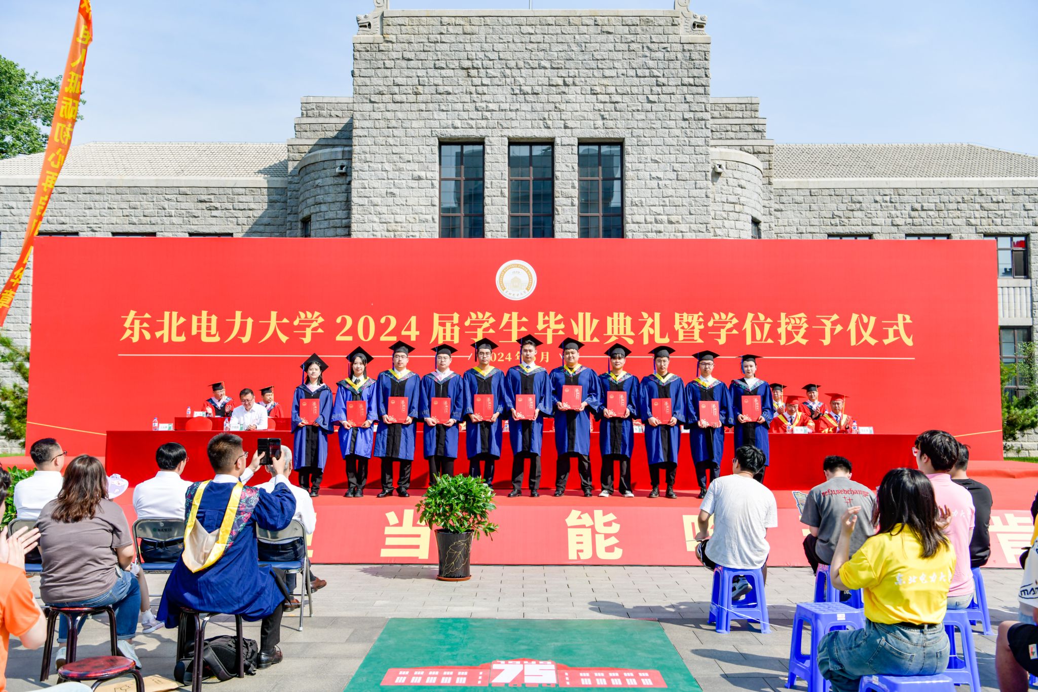 夏日的东电校园郁郁葱葱,清晨的石头楼广场彩旗飘飘,气球高悬,营造出欢快而庄重的氛围,广场上“到祖国最需要的地方去”“祝2024届毕业生前程似锦,未来可期”表达了东电学子为强国建设奉献青春的决心和学校对2024届毕业生满满的祝福。