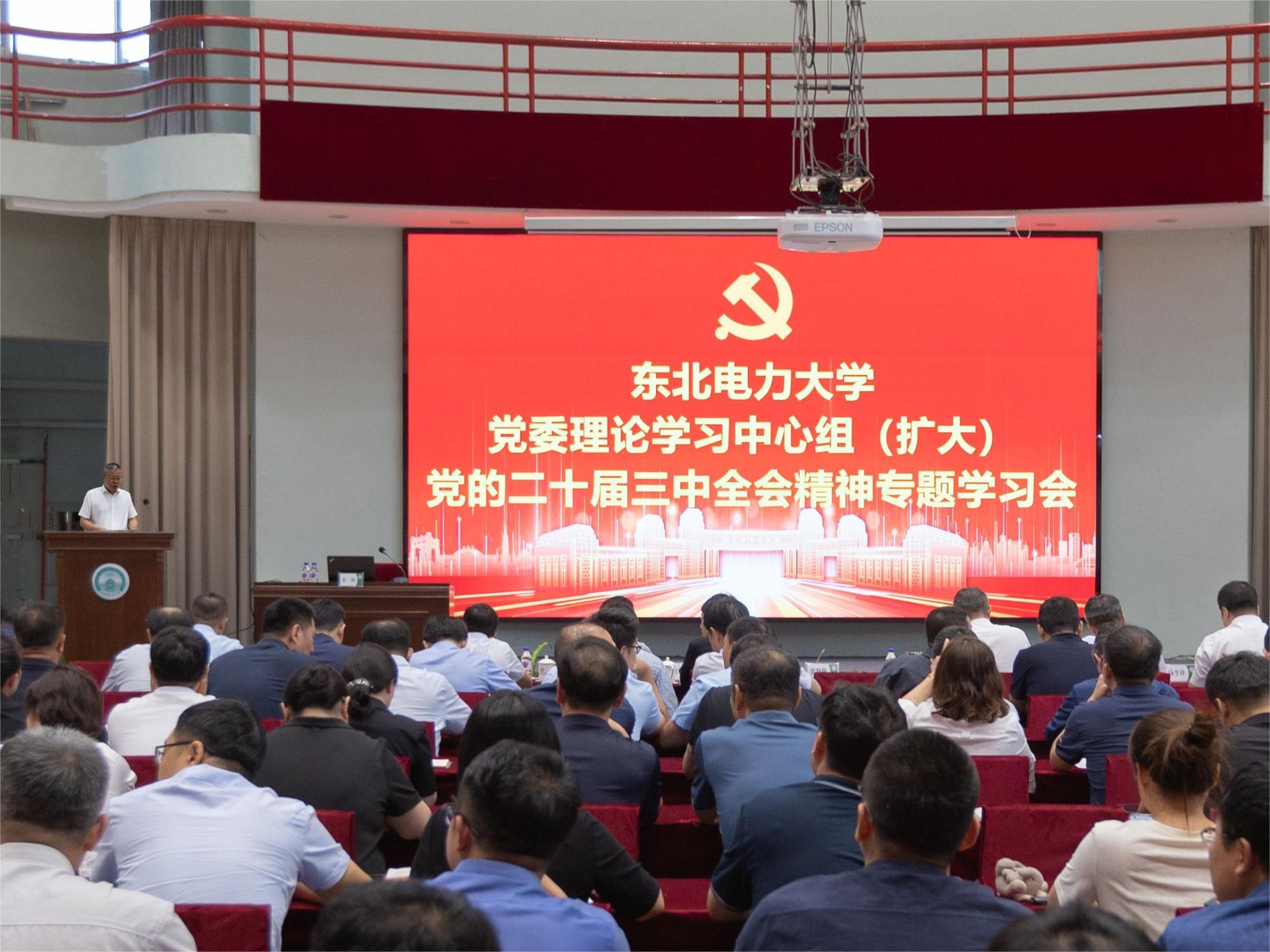 张静辉强调,学习宣传贯彻好党的二十届三中全会精神是当前和今后一个时期全校的一项重大政治任务。全校上下要深刻领会全会精神,切实落实好学习宣传贯彻工作。他要求,全校师生要切实加强组织领导,把握正确政治方向,按照学校统一部署和相关文件要求,抓紧抓好落实,迅速在全校兴起学习宣传贯彻全会精神的热潮。要在全校范围内开展对象化、分众化、互动化宣讲活动,增强实效性,实现全覆盖。要深入了解党情国情校情,结合《决定》充分认识新时代新征程深化教育综合改革的重大意义,统筹推进教育科技人才体制机制一体改革,将全会精神与学校快速高质量发展相结合,前瞻性开展“十五五”发展规划,以钉钉子精神抓好“十四五”发展规划的落实,把学习成果转化为特色高水平应用研究型大学建设的强大动力,为吉林全面振兴贡献东电力量。
