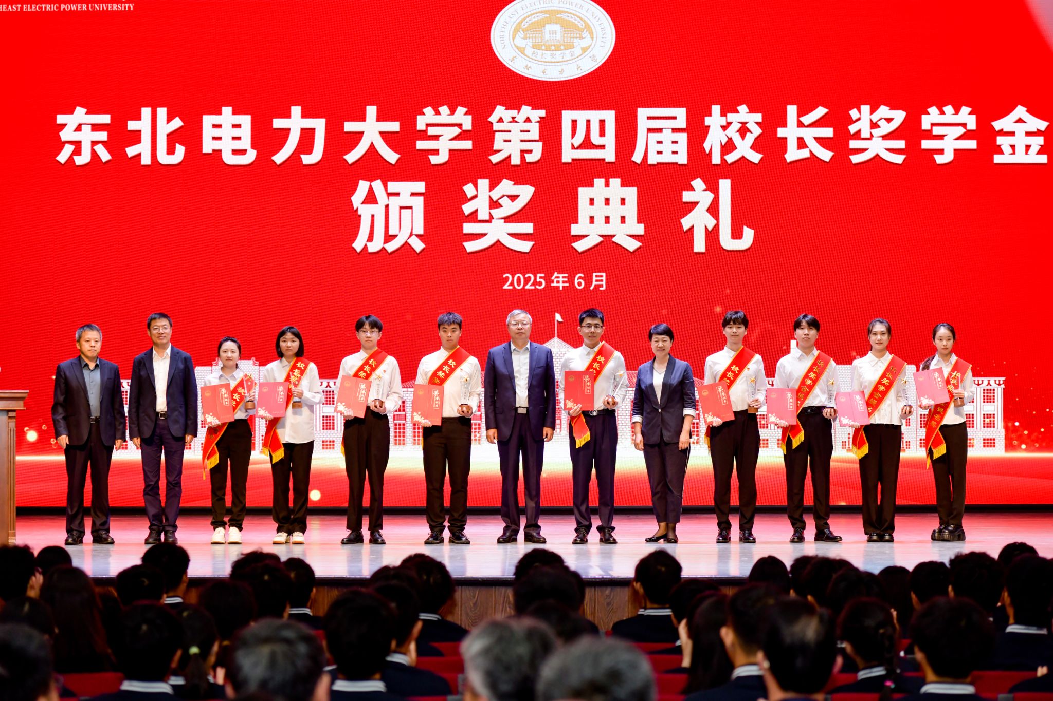 6月10日,东北电力大学第四届校长奖学金颁奖典礼在学校石头楼礼堂举行。学校党委书记张静辉、校长蔡国伟出席并为校长奖学金获得者颁发奖章和奖杯。党委副书记詹丽萍、李忱,党委常委、副校长王庆洲、孙灵芳参加典礼并为校长奖学金提名奖获得者颁发证书和奖杯。