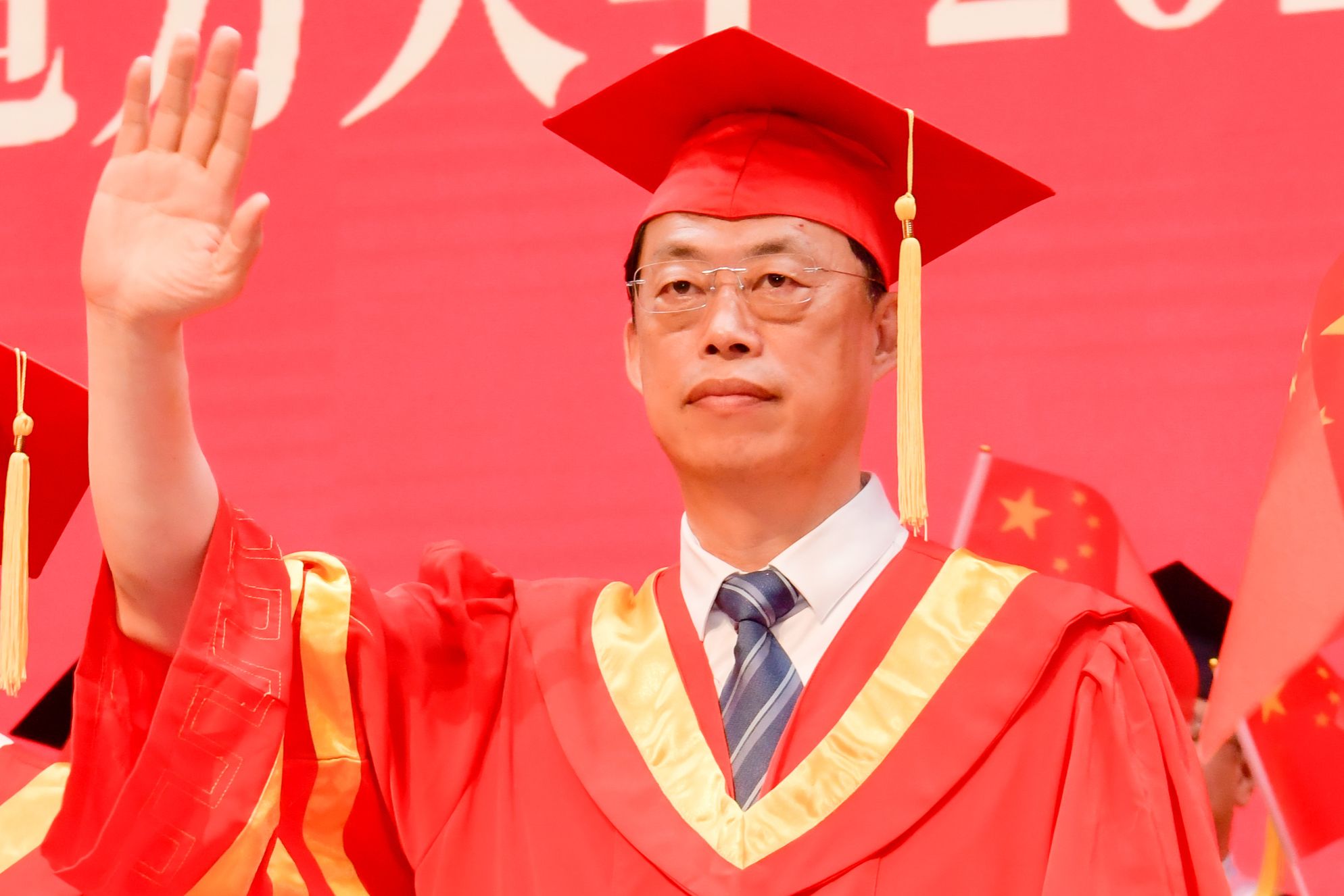 毕业典礼结束后,校长蔡国伟在石头楼礼堂为研究生毕业生代表颁发毕业证书和学位证书并拨动流苏。毕业典礼通过学校官方视频号、抖音号等网络平台同步直播,近3万人线上观看,点赞12万次,共同见证这场毕业盛典。