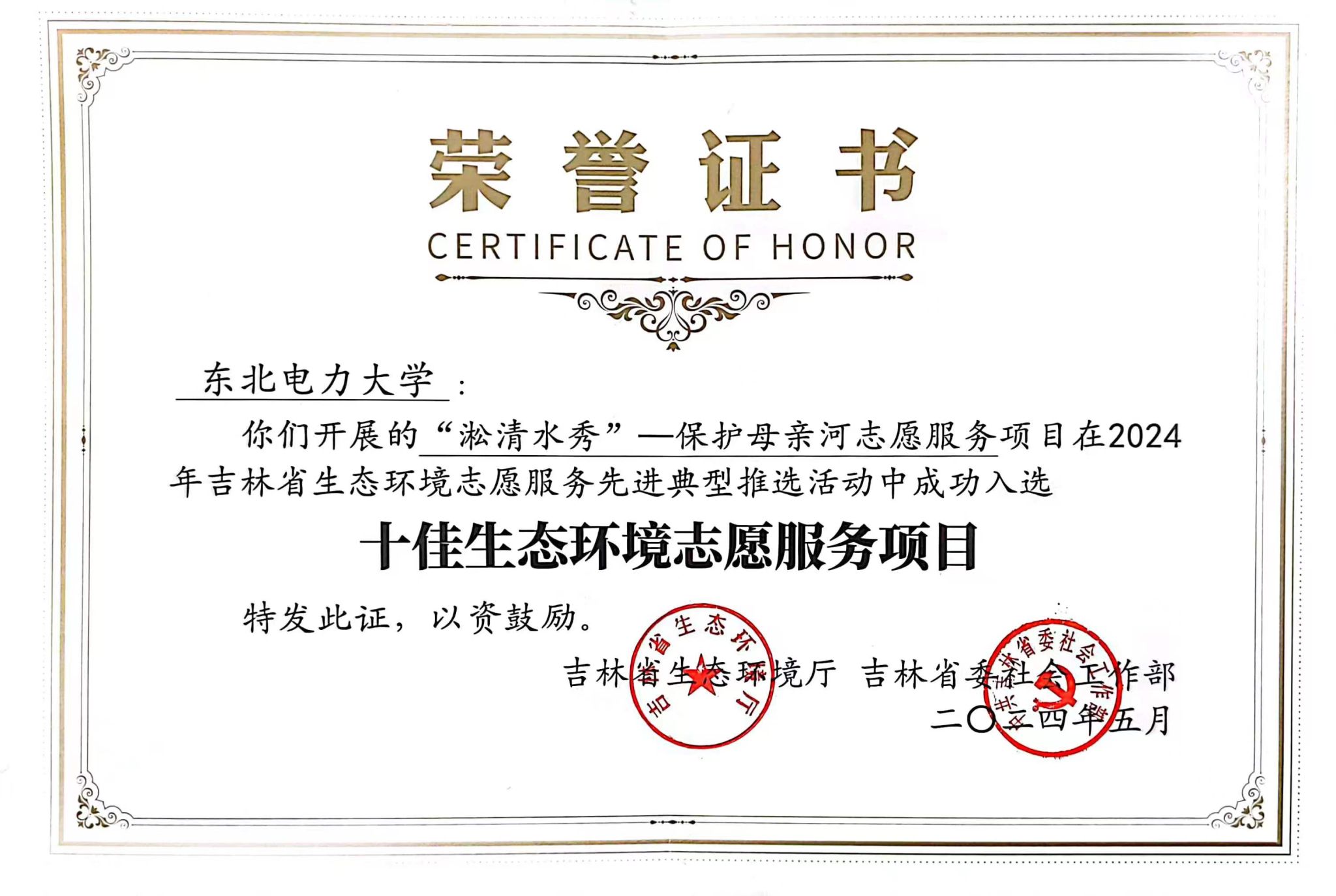 近日,吉林省生态环境厅和中共吉林省委社会工作部联合公布了《2024年吉林省生态环境志愿服务先进典型推选名单》。我校化学工程学院永冀青年志愿者站“淞清水秀”保护母亲河志愿服务项目获评2024年吉林省“十佳生态环境志愿服务项目”,并纳入吉林省生态环境厅志愿服务库予以培育和扶持。并于6月5日作为吉林省生态环境志愿服务代表,参与今年吉林省六五世界环境日主场宣传活动进行展示。