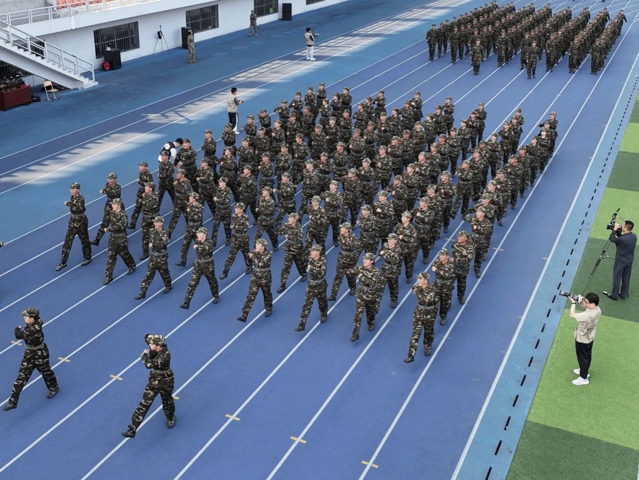 在军训闭营式上,蔡国伟检阅了受训的2024级新同学。在校旗、团旗的引导下,同学们挺傲骨,展雄风,口号嘹亮,步伐铿锵,精神抖擞地走过主席台接受检阅,赢得阵阵掌声。在军训科目表演中,同学们目光坚定、动作整齐、英姿飒爽、气势高昂,彰显了新时代青年大学生自强自信、昂扬向上、团结拼搏的精神风貌。