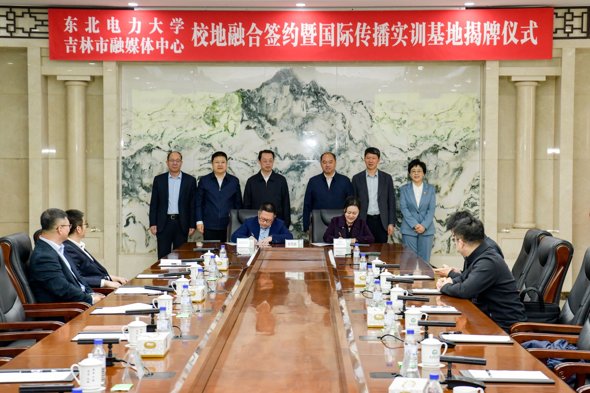2025年4月30日,东北电力大学与吉林市融媒体中心校地融合签约暨国际传播实训基地揭牌仪式在思成会议厅举行。学校党委书记张静辉,吉林市委常委、市委宣传部部长马研出席仪式。吉林市委宣传部常务副部长肖模喜,市融媒体中心党委书记、主任万春梅,总编辑赵新宇,学校党委常委、副校长杨冬锋,党委常委、宣传部部长刘辉参加活动,杨冬锋主持仪式。