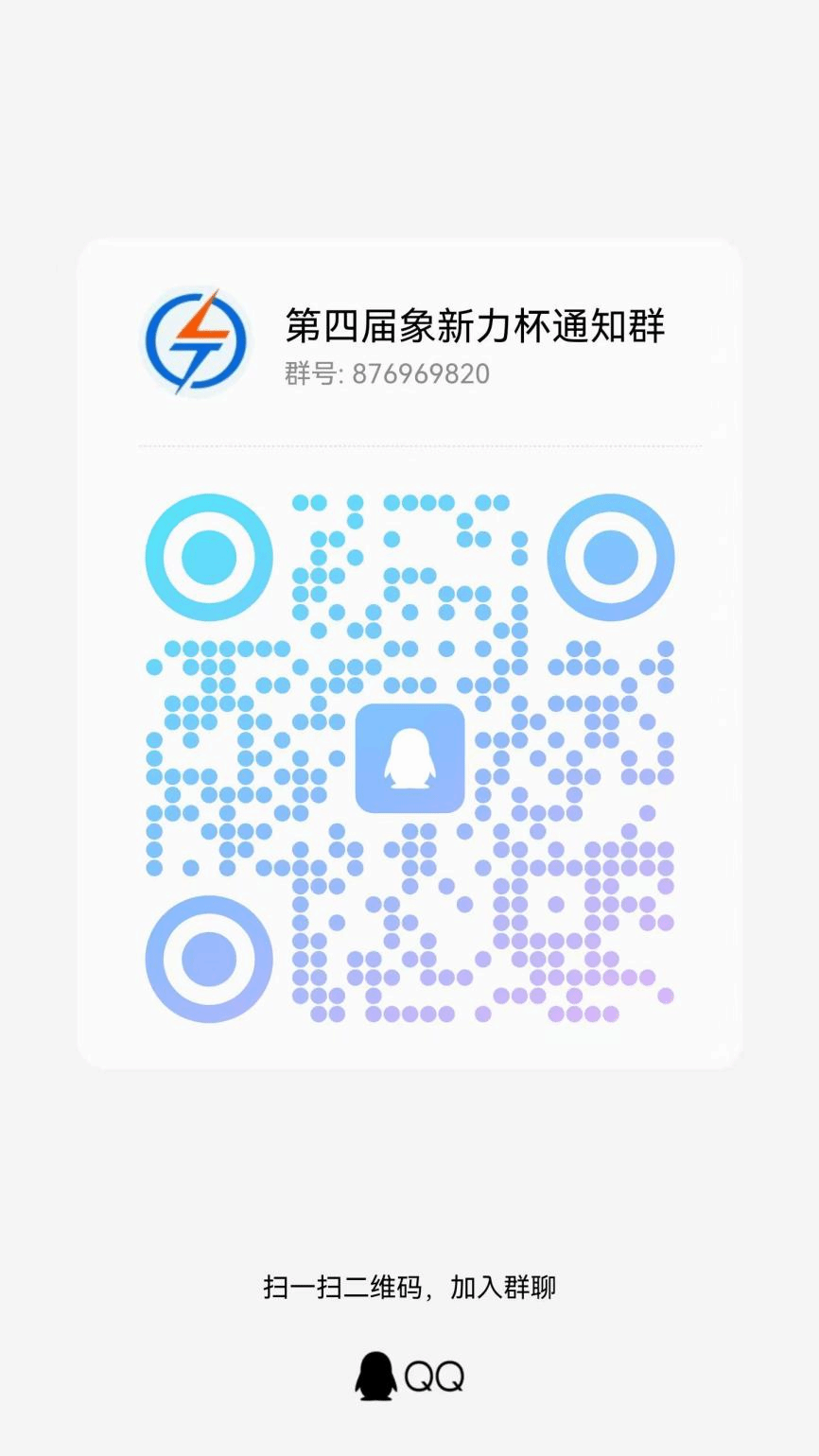 4.请各位参赛选手扫码进入象新力杯校赛通知群(876969820),及时关注后续通知。