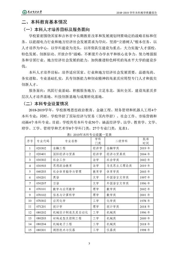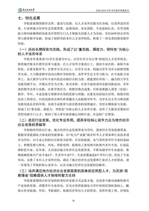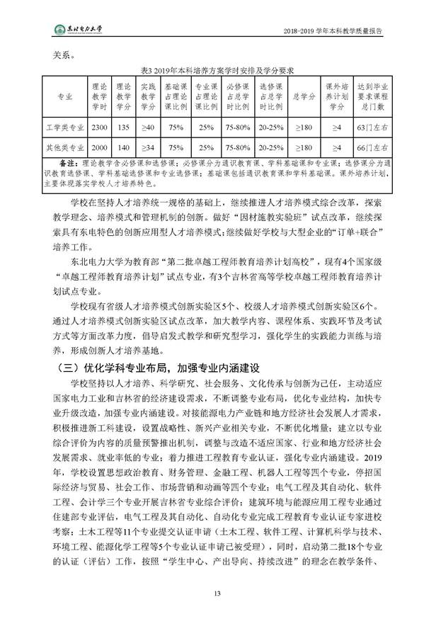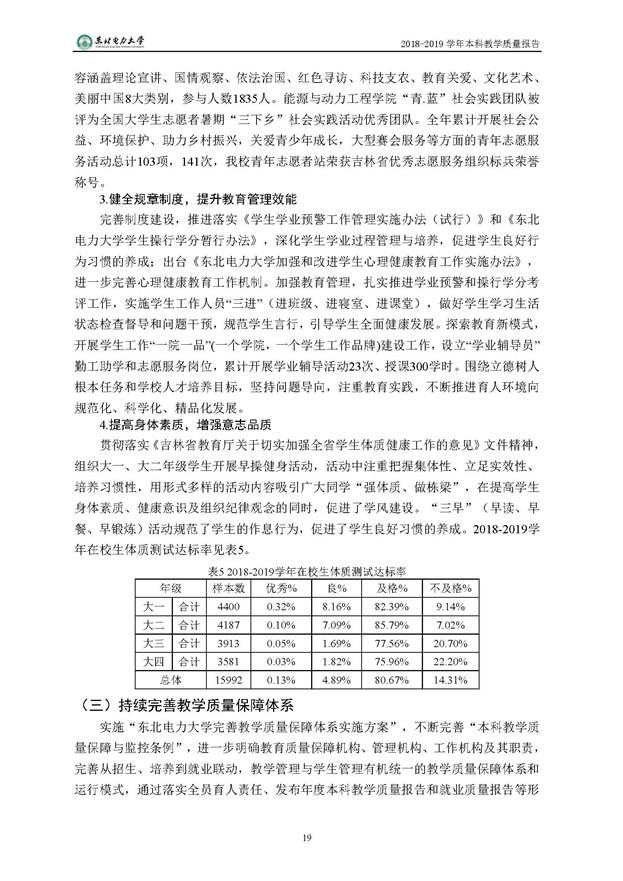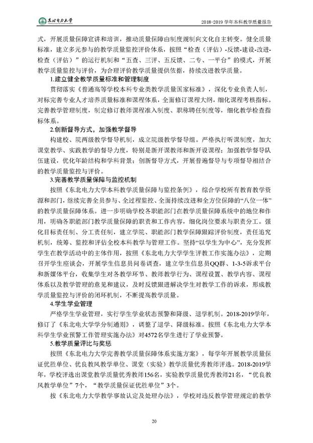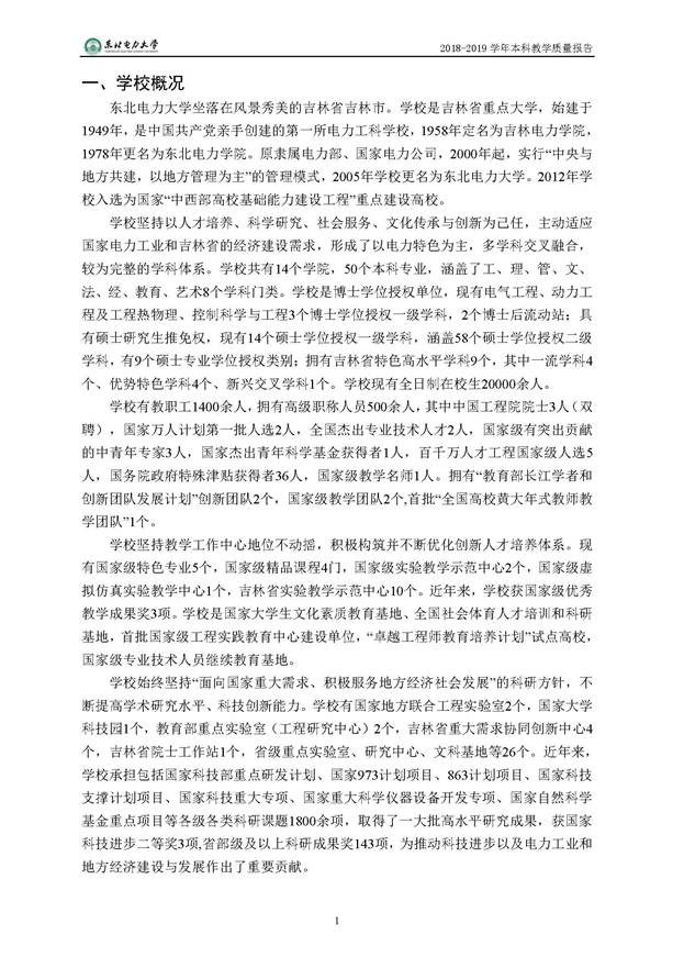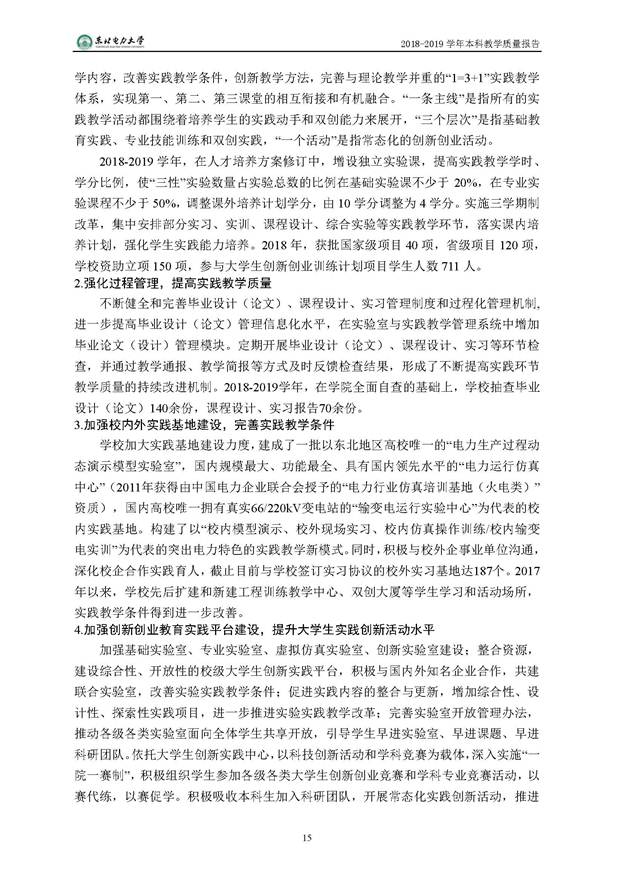 东北电力大学2018-2019学年本科教学质量报告