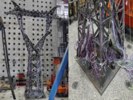 结构试验大厅建筑面积10000m2,拥有24m×60m反力台座和13.5m高双向反力墙,六通道MTS拟动力结构试验加载及反力系统,2000t卧式反力加载装置,500t液压伺服作动器,500t压力试验机,输电导线振动疲劳试验系统等设备,能够开展大比例尺结构、构件和节点的多自由度拟静力和拟动力试验,对结构或构件的力学性能、振动特性和抗震性能等进行测试。