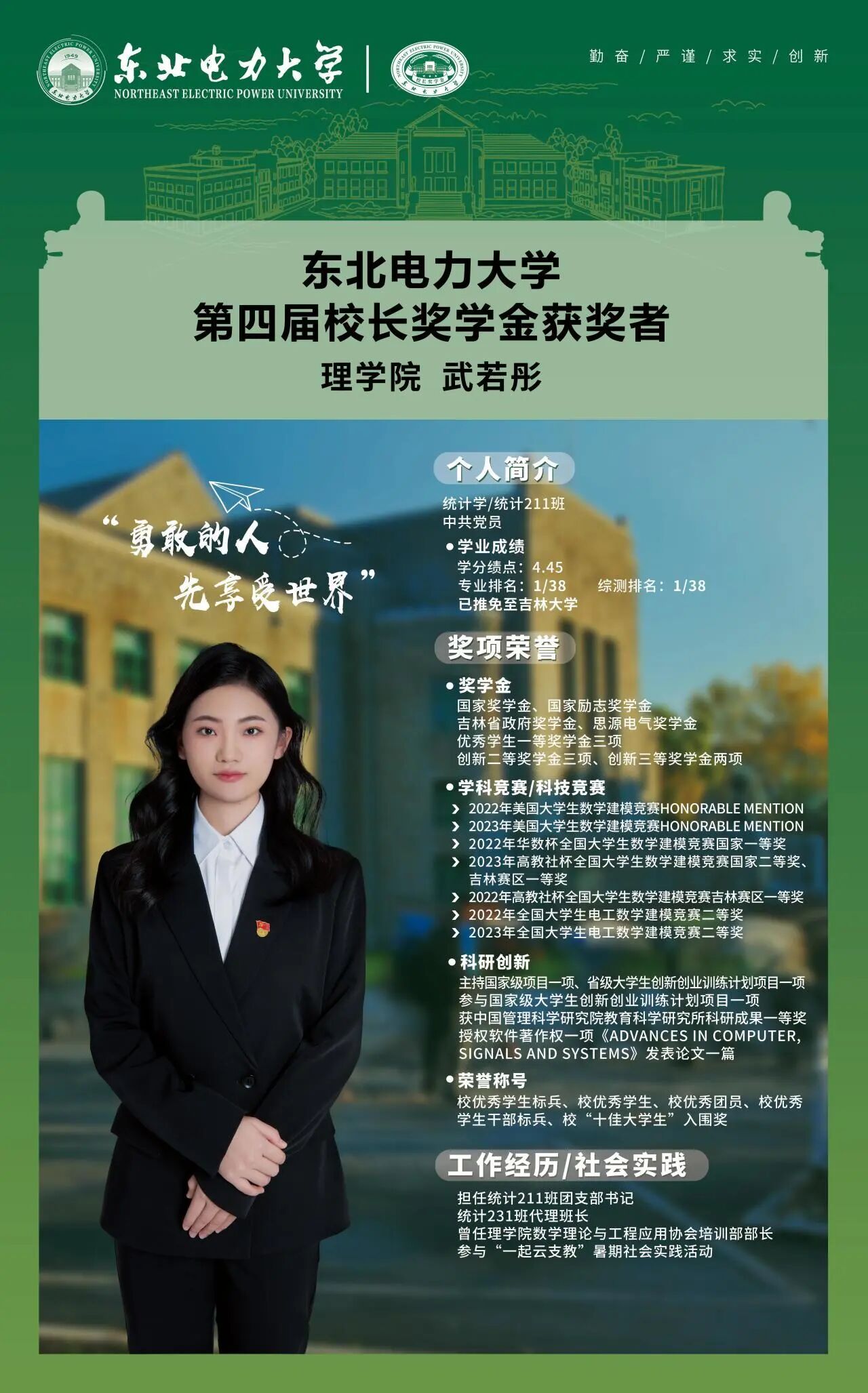 第四届校长奖学金获奖者——武若彤